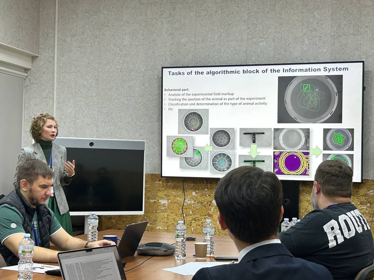 На конференции с докладами выступили представители кафедры биофизики ФЕИН. Доцент Юрий Северюхин рассказал о задачах, методах и результатах радиационной нейробиологии, а ассистент кафедры Инна Колесникова представила доклад, посвященный подходам к анализу экспериментальных данных на мелких лабораторных животных.