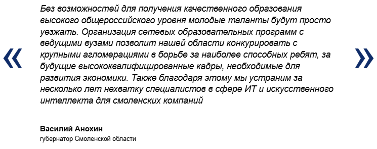 В рамках этого партнерства стороны запустят сетевую бакалаврскую программу двух дипломов «Прикладная математика и информатика». НИУ ВШЭ и СмолГУ будут готовить высококвалифицированных ИТ-специалистов, которые в процессе обучения получат профессиональные навыки, отвечающие современным запросам рынка труда. «Прикладная математика и информатика» — это флагманская программа бакалавриата на факультете компьютерных наук НИУ ВШЭ, на которую ежегодно приходит рекордное количество победителей и призёров всероссийских олимпиад по информатике и математике. Программа готовит специалистов в сфере искусственного интеллекта, распределённых отказоустойчивых систем, теоретической информатики.