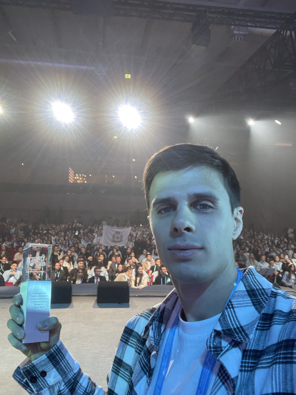 Константин Солоп выиграл с проектом «AlmaMater» — это цифровая платформа, объединяющая сообщества и образовательные учреждения в единую сеть. Проект нацелен на создание мирового онлайн-университета, где знания и опыт передаются напрямую от человека к человеку без посредников. Это позволит студентам, преподавателям, учёным, экспертам и образовательным организациям эффективно взаимодействовать друг с другом, монетизировать свои компетенции и тем самым повышать качество и доступность образования. Студент также стал одним из пяти победителей отдельного конкурса компании «Росатом». «На церемонии меня переполняло чувство гордости и благодарности ШИР МФТИ и Глобальному университету Рыбакова за помощь в развитии крупного международного продукта», — поделился своими эмоциями Константин.