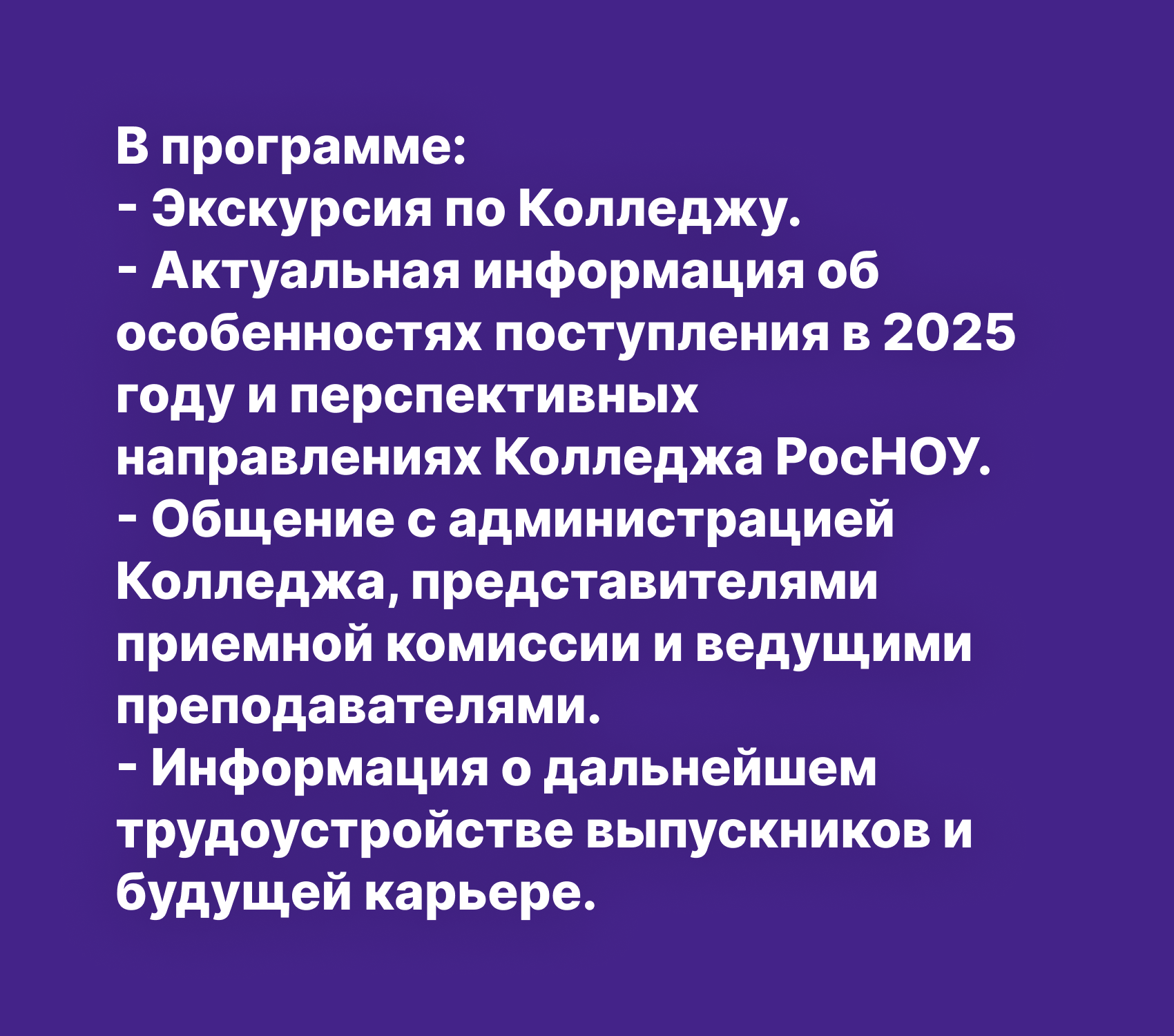 - Актуальная информация об особенностях поступления в 2025 году и перспективных направлениях Колледжа РосНОУ.