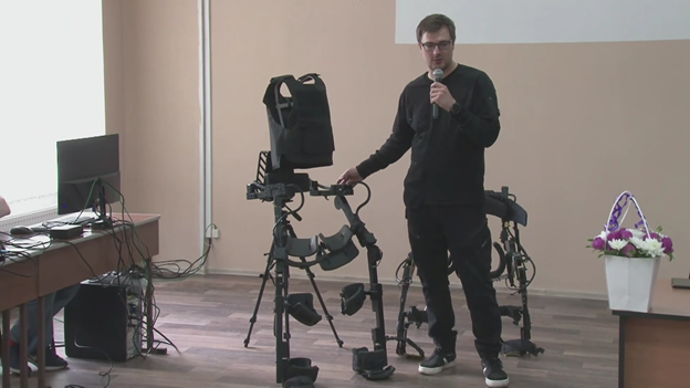 [51:40 – 01:14:33] Илья Александрович Таратонов, выступающий от имени компании «Таратонов Самсонов Роботикс», рассказал о разработке и возможностях применения экзоскелетов для реабилитации. Для наглядности был продемонстрирован реальный разработанный экземпляр экзоскелета.