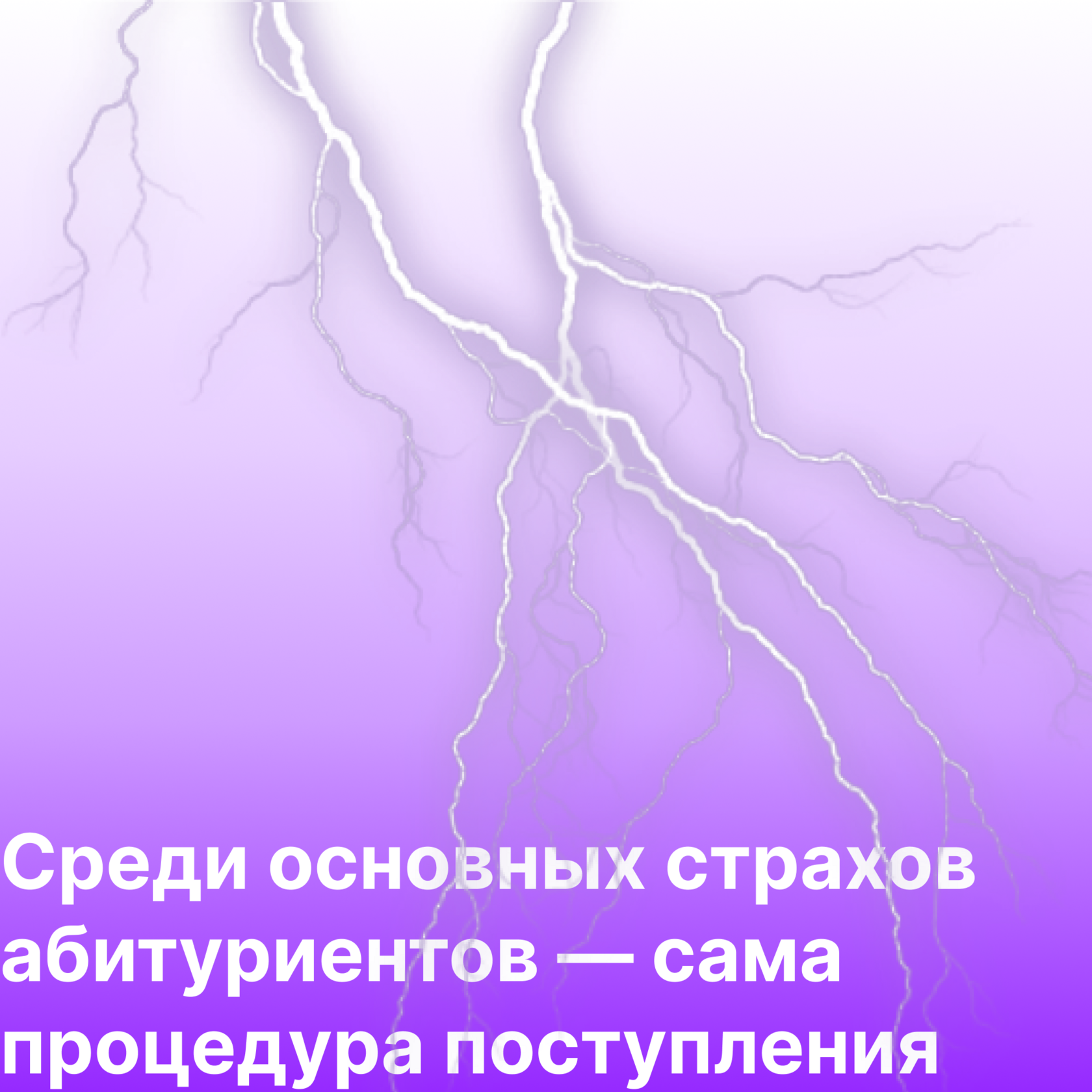 Среди основных страхов абитуриентов — сама процедура поступления. 39% абитуриентов боятся не поступить в желаемый вуз, 12% — не поступить на желаемый факультет, 21% — не поступить на бюджет, а 28% — не поступить вообще. Последний показатель вырос на 10% в сравнении с прошлым годом.